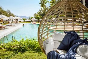 Собствен, пясъчен плаж с ширина 180 м, удостоен със син флаг. Чадъри и шезлонги на плажа и при басейна - безплатно.