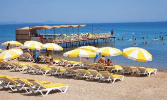Собствен, пясъчен на 400 м от хотела. Чадъри, шезлонги и плажни кърпи на плажа и при басейна – безплатно. Два пъти дневно функционира безплатен шатъл от и до плажа.