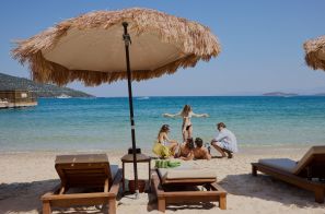 Частни вили (Private villas): Aphrodite Villa – 190 м², с гледка към морето. На първия етаж: хол, трапезария, кухня, баня; на втория етаж – 2 спални с врата, 2 бани, гардеробна, балкон, собствен басейн (1.40 м дълбочина), VIP зона на плажа – максимум 5 души капацитет – VIP обслужване; 14 Apollon Villa – 280 м², с гледка към морето. На първия етаж: хол, трапезария, кухня, спалня с врата, гардеробна; на втория етаж – 3 спални с врати, 3 бани, балкон, тераса, собствен басейн (1.40 м дълбочина), VIP зона на плажа – максимум 7 души капаците – VIP обслужване; 11 Poseidon Villa – 330 м², с гледка към морето. На първия етаж: хол, спалня с гардеробна, трапезария, кухня, баня; на втория етаж: 4 спални с врати, 4 бани, балкон, тераса; собствен басейн, максимум капацитет 8 души, VIP зона на плажа, VIP обслужване; 3 Hermes Villa – 365 м², 1 основна спалня + 4 допълнителни, просторна дневна, собствен басейн; Zeus Villa – 450 м², 6 спални, дневна, трапезария, 5 бани; Presidential Villa – 800 м², 6 спални, дневна, трапезария, възможност за личен готвач.