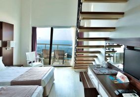 Хотелът разполага 137 стаи, от които 127 стандартни (103 с изглед море и 24 с изглед градина, 20-24 м²), 8 дуплекс фамилни (2 единични легла на долния етаж и спалня на горния етаж, без свързваща врата, 25-26 м²), 1 суит и 1 disabled (пригоденa за хора с ограничена подвижност - 30 м²). Всички стаи са оборудвани с климатик, телевизор, телефон, баня с душ/вана, сешоар, минибар, сейф (безплатен), балкон.