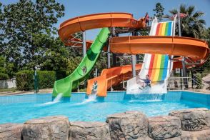 Основен ресторант, 2 бара, 2 открити басейна, закрит басейн (отопляем през студените месеци), водни пързалки, тв зала, магазини, паркинг.