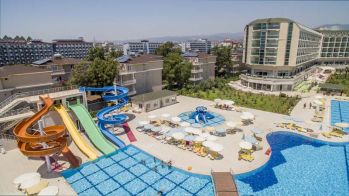 Основен ресторант, 3 Ала Карт ресторанта (турски, рибен, барбекю - с предварителбно записване, за 1 седмичен престой се полага 1 посещение - безплатно), 6 бара, 2 открити и 2 закрити басейна, 1 конферентна зала, SPA център, магазини, фризьорски салон. За децата: детски басейн, мини клуб, анимация, детска площадка. Безплатни услуги: сауна, турска баня, плажен волейбол, тенис на корт, тенис на маса, баскетбол, боулинг, безжичен интернет (на lobby). Платени услуги: масаж, игрални автомати, лекар, водни спортове. Плаж: Собствен - пясъчен. Чадъри, шезлонги и матраци на плажа и басейна - безплатно.