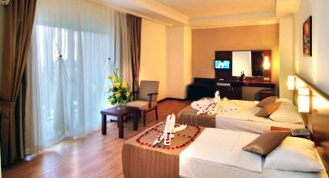 Климатик, телевизор, сателитна телевизия, телефон, баня с вана, сешоар, балкон, мини-бар ( вода и безалк. напитки в ден настаняване безплатно ).