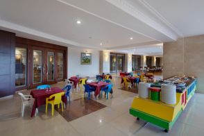 Основен ресторант, 2 а - ла - карт ресторанта, 6 бара, 3 басейна, аквапарк. За децата: детски басейн, аквапарк, анимация Безплатни услуги: сауна, турска баня, фитнес, аеробика, мини клуб, мини - футбол, дискотека - напитки платено, безжичен интернет в лоби бар, баскетбол, сейф, дартс. Платени услуги: масаж, детегледачка, осветление тенис корт, билярд, уроци по тенис, водни спортове, фризьор, Интернет кафе, мини футбол, център за красота, СПА-център, билярд. Плаж: Пясъчно - чакълест. Плажни чадъри, матраци и шезлонги – безплатно.