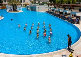 Безплатни услуги: Сауна, турска баня, парна баня, зона за релакс, фитнес, мини футбол, баскетбол, тенис корт, тенис на маса, плажен волейбол, водно поло, водна гимнастика, дартс, боча, билярд, бадминтон, табла, танци, табата, йога, стречинг, пилатес, степ зумба, канго джъмп, спортни тренировки, звукова терапия, жива музика, анимация, Wi-Fi (на цялата територия).
