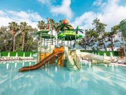Основен ресторант, 2 снек ресторанта, сладкарница, 1 а-ла-карт ресторант (италианска кухня, с предварителна резервация - с доплащане), 3 бара, дискотека (с доплащане), основен открит басейн, вътрешен басейн, аквапарк с 5 пързалки за възрастни и 4 пързалки за деца, СПА център, фитнес, хамам, сауна, тенис на корт, магазини, WI-FI, външен паркинг.