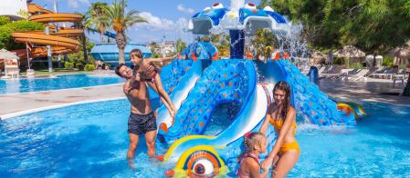 основен ресторант, 12 а-ла-карт ресторанта, 9 бара, 5 басейна, 3 вътрешни басейна, аквапарк с 11 пързалки, дискотека, СПА център, турска баня, сауна(био, руска, класическа), спортен център (футбол, тенис, голф, езда), конферентна зала, амфитеатър, анимация, WI-FI. Безплатни услуги: турска баня, сауна, фрешове на закуска, анимация, тенис на маса, дартс. Платени услуги: тенис корт, телефон и факс, магазини, билярд, моторни водни спортове, За децата: детски басейн, 6 детски пързалки, анимация, мини клуб (4-12г.), мини диско, тийн клуб(13-16г.). Плаж: собствен, пясъчен. Чадъри и шезлонги на плажа и басейна - безплатно.