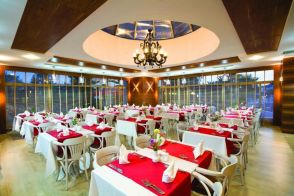 Хотелът разполага с основен ресторант, 3 а-ла-карт ресторанта (италиански, османски и средиземноморски- 1 посещение в седмицата), 3 бара, плувен басейн, вътрешен басейн, водни пързалки, СПА център, сауна, парна баня, турска баня, масажи, анимация, тенис на корт, тенис на маса, аеробика, водни спортове, дартс, WI-FI. За децата: детски басейн(външен и вътрешен), детски водни пързалки, мини клуб.