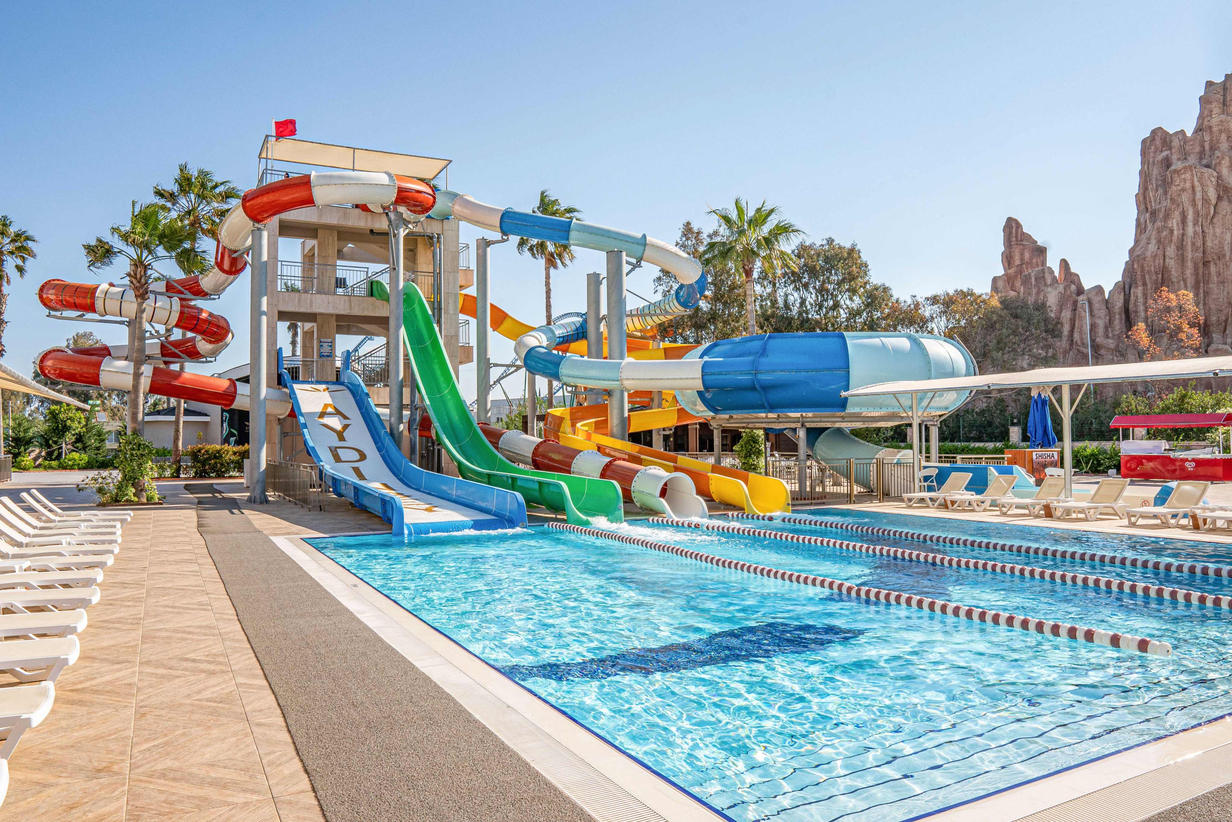 Основен ресторант, 2 а-ла-карт ресторанта (италиански и далекоизточен - 1 безплатно посещение на 1 от ресторантите при минимум 7 нощувки, с предварителна резерваия), 2 снек ресторанта, сладкарница, станция за сладолед и палачинки, 5 бара, кафетерия, диско бар, открит и закрит (отопляем) басейн, аквапарк, СПА център, магазини, конферентна зала.
