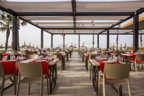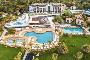 Хотелът разполага със собствен, пясъчно-чакълест плаж с дължина 350 м, на който има два кея (единият е 16+). За удобството на гостите си има също 5 открити басейна (единият е 16+), 1 закрит басейн. Шезлонги, чадъри, матраци, плажни кърпи на плажа и при басейните се предоставят безплатно.
