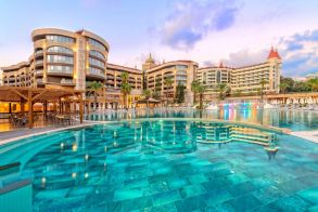 За децата: детско меню, детски басейн, водни пързалки, мини клуб (4–12 г.) детска дискотека, детска площадка, детегледачка (платено)