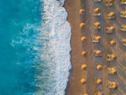 Плажна ивица с камъчета/чакъл . Чадъри и шезлонги на плажа и при басейна - безплатно. Плажни кърпи - безплатно.