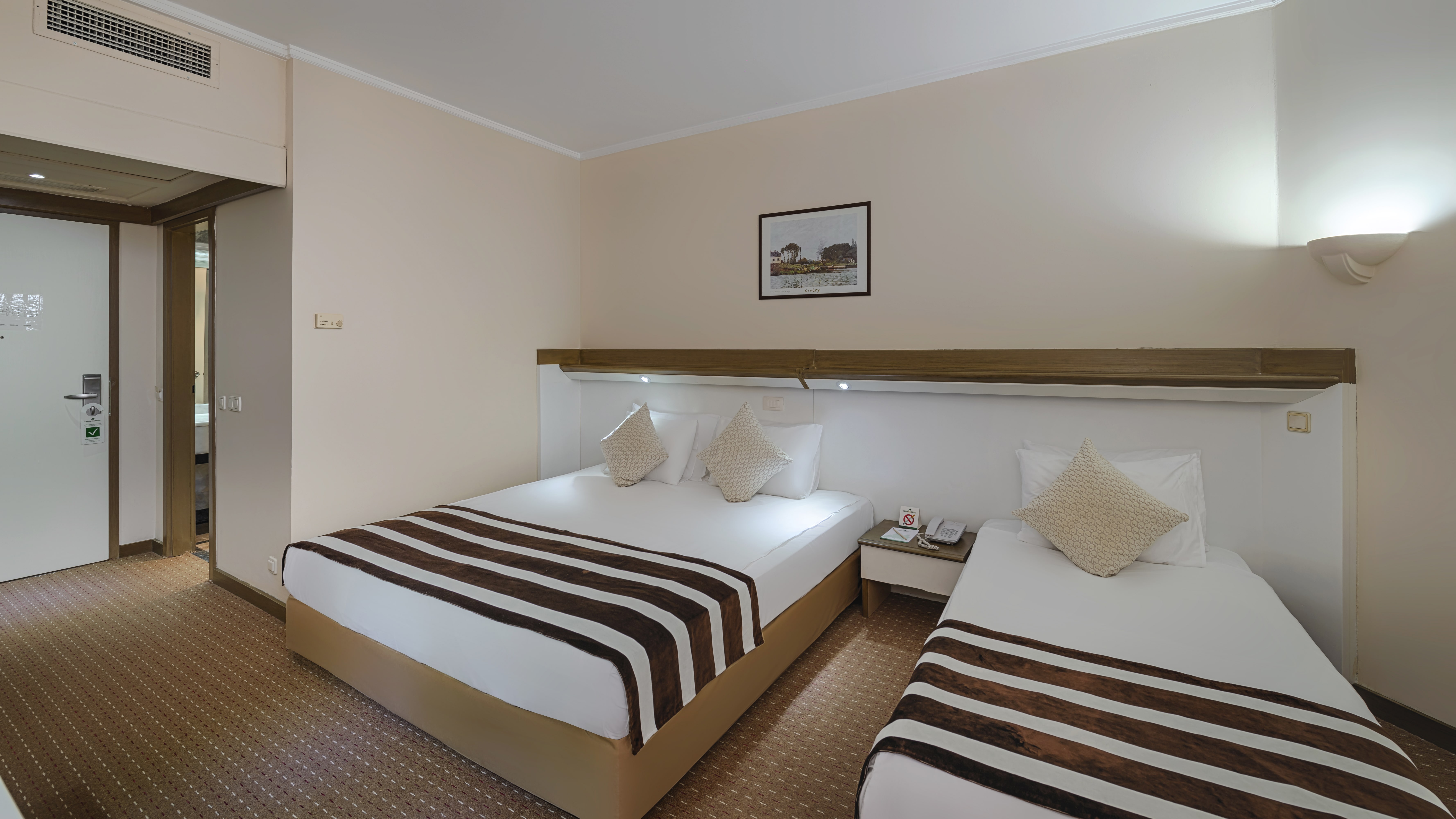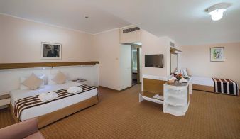 Всички стаи са оборудвани климатик, телевизор, телефон, баня с душ/вана, сешоар, мини бар, сейф, сет за кафе/чай. Почистване на стаите и смяна на кърпите - всеки ден, смяна на спалното бельо – 2 пъти седмично.