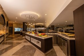 3 основни ресторанта (Gourmet, детски ресторант – IXY Planet, She & He – в зоната за възрастни), 3 а-ла-карт ресторанта - Thymàri (средиземноморски, 1 безплатно посещение при минимум 5 нощувки), Mazu (азиатски), Apollon (стекхаус) - нужна е резервация за всички а-ла-карт ресторанти, 4 бара (лоби бар, 2 бара при басейните, бар на плажа), Старбъкс кафетерия (над 16-годишна възраст), сладкарница, дискотека, 1 основен открит басейн, басейн в зоната за възрастн фитнес център, СПА център.