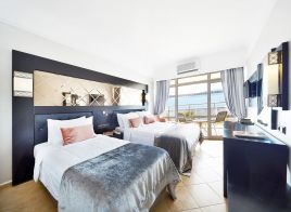 Индивидуален климатик, баня/ душ, сешоар, телефон, сателитна телевизия, сейф, балкон, минибар ( зареждане с вода, безалкохолни напитки, сок), почистване на стаите – всеки ден, смяна на спалното бельо – 3 пъти в седмицата, смяна на хавлиите – всеки ден.