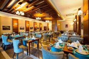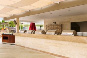 Оновен ресторант, 1 а-ла-карт ресторанта (интернационален, с предварителна резервация, при минимален престой 7 нощувки), лоби бар, сладкарница, бар на плажа, открит и закрит басейн, 6 водни пързалки*, СПА център.