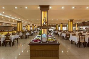 Хотелът разполага с основен ресторант и два а`ла карт ресторанта. База All Inclusive включва закуска, обяд, вечеря и междинни хранения на шведска маса, местни алкохолни и безалкохолни напитки без лимит в интервала 10:00 - 23:00 ч.
