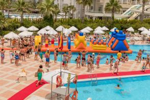 Основен ресторант, 3 бара, открит и закрит басейн, 3 водни пързалки, фризьор, 2 конферентни зали, Безплатни услуги: турска баня, сауна, аеробика, плажен волейбол, тенис ракети под наем, дартс, дискотека (напитки - платени), скуош, кану, безмоторни водни спортове. Платени услуги: Масаж, парна баня, билярд, осветление тенис корт, Интернет кафе, моторни водни спортове.