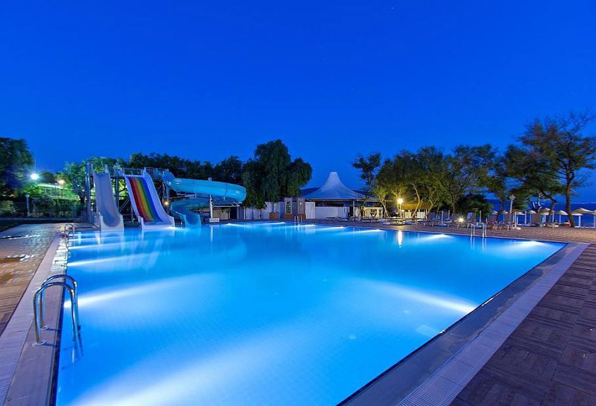 За децата: Детски басейн, водни пързалки, детска площадка, мини клуб (4–12 г.)
