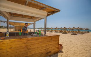 Собствен, на 200 м от хотела, пясъчен. Чадъри, шезлонги и матраци на плажа и басейна - безплатно. Плажни кърпи - платени, срещу депозит.